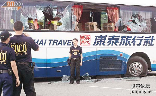 | 菲警察真是差劲到底了,一个匪就搞得如此被动,当初看他们那架势还以为有一帮呢,只一个就不能利索地解决,可车上的人也如此被动等救,几十个人也不敢动一下? 不动也死,为什么就不动一下呢? |