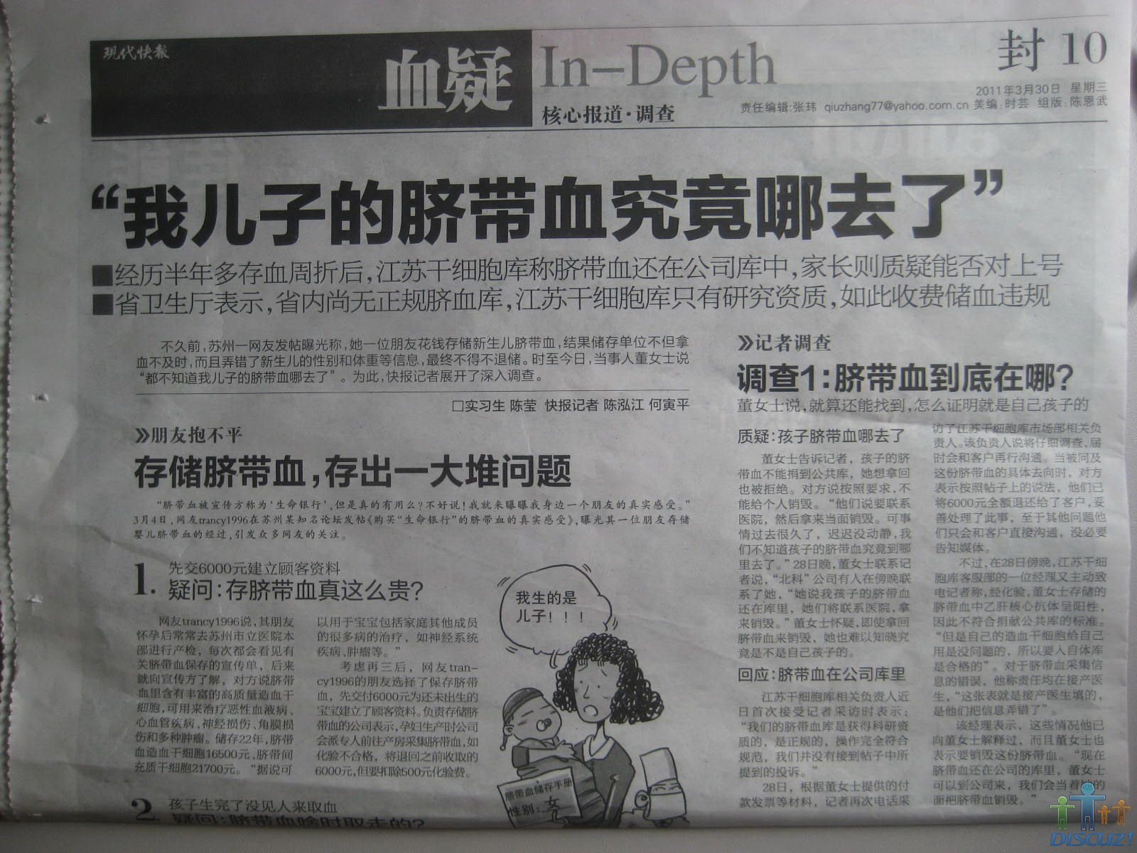 前不久,看到似乎一个MM准备了2万块,一部分钱入保存脐带血。。。 我前不久坐飞机,在飞机上看到了这个报道,特来发给她看看。 我向来是怀疑一切,因为我们在这个有毒的世界里,什么都是不安全的,什么都是 ...