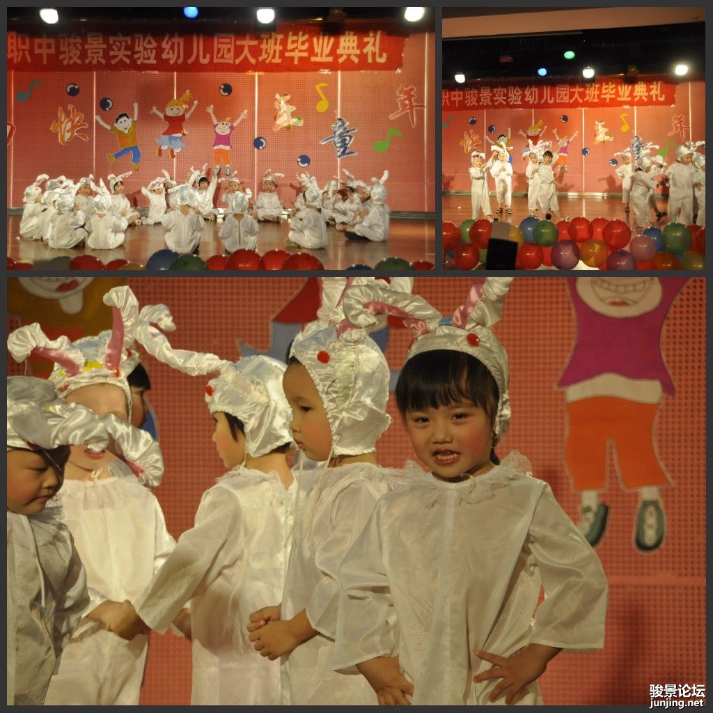 今天是俺家小妞上幼儿园以来的第一次上舞台表演,如有哪位家长拍到《兔子舞》(小3班节目)和《爸爸妈妈去上班》(舞蹈班节目)的照片,方便的话请发给我珍藏,GG谢!