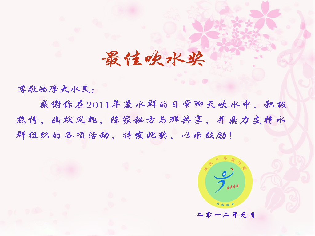 偶是落队的水民部落成员 ,2012从婆厨赛开始 重新申请入队可以吗?![]() 以后要多参加活动,不掉队呵 ![]() |