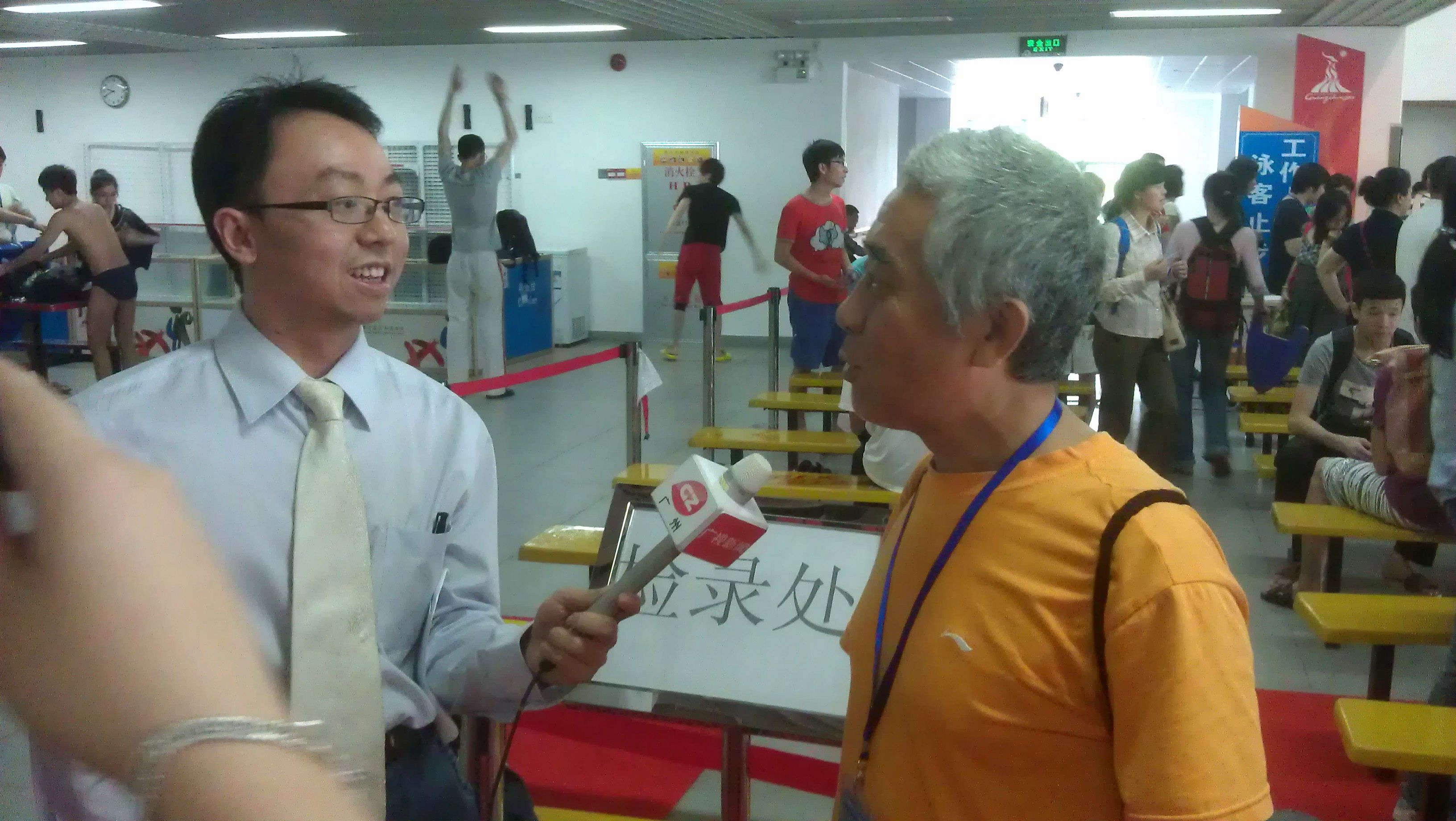 4月29日奥体中心游泳比赛时,被作为最老参赛选手接受采访 昨晚在广州电视台播出了。