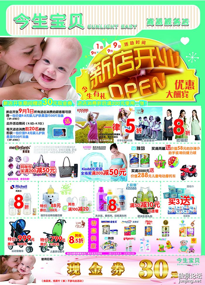 热烈祝贺今生宝贝骏景花园店9月1号正式开业!! 今生有礼,惊喜无限。开业期间将有优惠活动,欢迎各位光临。 地址:骏景花园东御苑G5-6楼下绿茵街7号103铺。联系人:唐小姐 电话:13660280795
