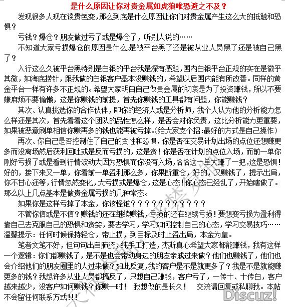 此帖后续会跟进操作心态技巧和行业相关知识,但很少会写行情建议方面的东西,盘中变化莫测论坛很多更新不过来,不及时就没用意义了。给个区间没有实际意义,即使是对的,到点位你自己也不敢做,不然就不会有那么多的客户跟着我们做了,每天去网上看看建议自己做就可以了,但事实并非如此……,很多时候到点位了,提示几遍还有客户不敢进场,何况只是一个建议! |